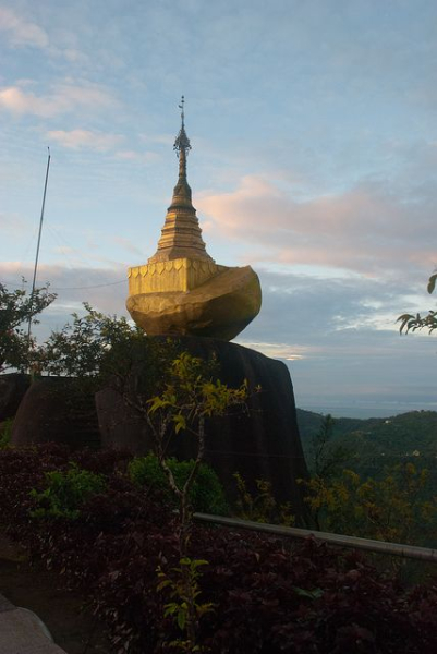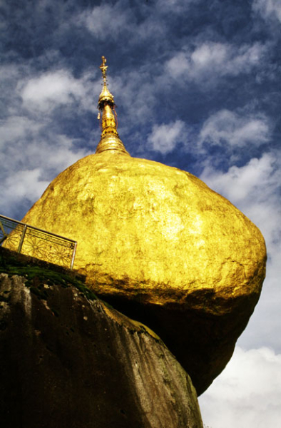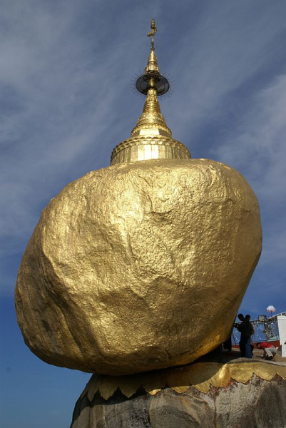 «Золотой камень» — это буддийская религиозная достопримечательность, святыня, которая находится на вершине горы Чайттийо, гранитный камень весь покрыт сусальным золотом и сверху, на нем находится Пагода Чайттийо (Kyaiktiyo Pagoda) высотой 5.5 метров. Вся это массивная конструкция балансирует на краю скалы, люди многие века не могут разгадать загадки, почему камень не падает и кто мог его сюда затащить.