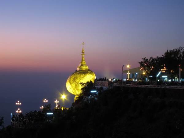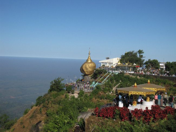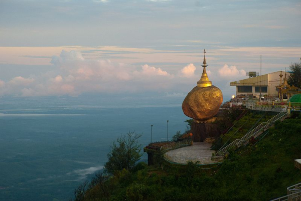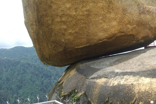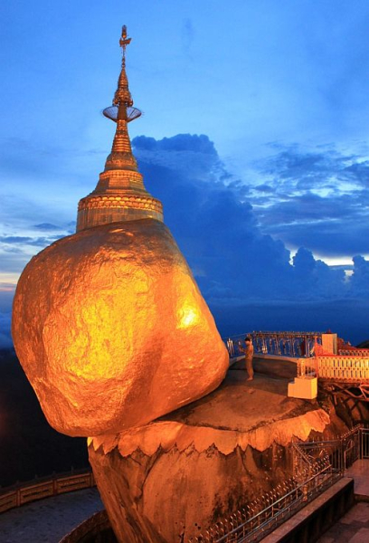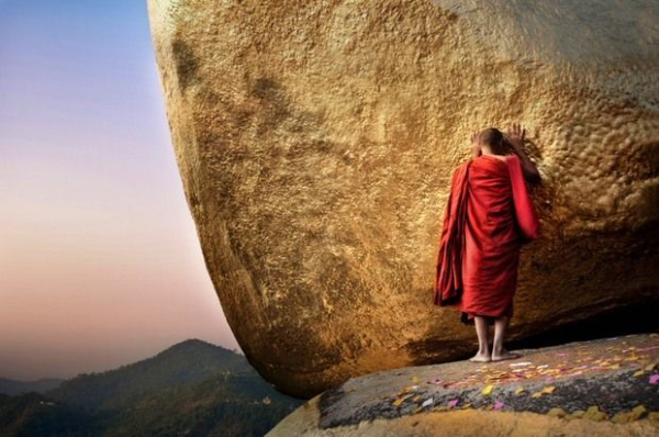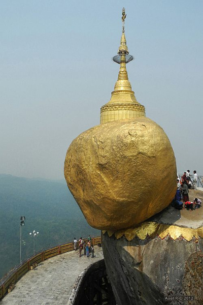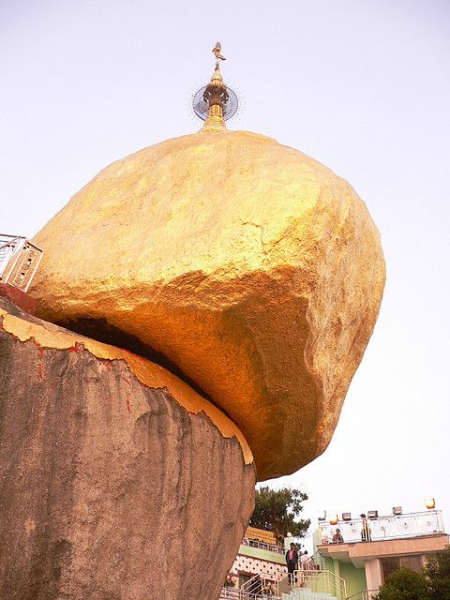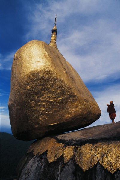Каким-то неземным чудом повис над пропастью огромный золотой камень в штате Мон в Мьянме (Myanmar), его может расшатать каждый, но за все 2500 лет даже стихии не смогли скинуть его с горы. Говорят, что лишь только женщина сможет это сделать.