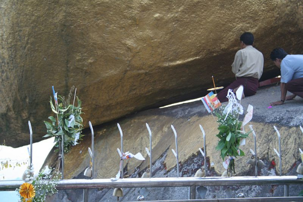 К пагоде каждый год приходит огромное количество паломников , особенно в конце марта, он является последним месяцем бирманского года, он здесь называется — Табанг. При входе к пагоде продаются пластинки с сусальным золотом, монахи и паломники покупают его и старательно покрывают ими камень, так происходит из года в год, поэтому в некоторых местах камень от большого количества слоев золота покрыт бугорками.