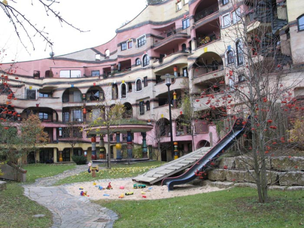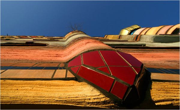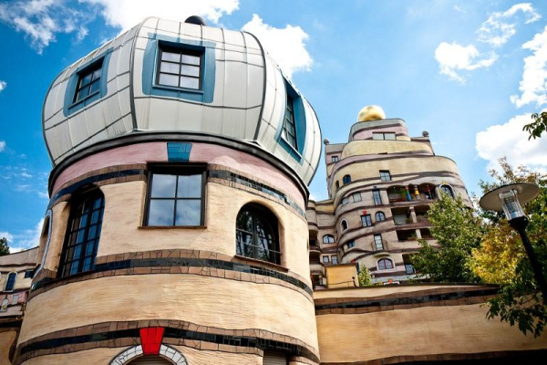 Над каждым окошком дома изображена корона: любой жилец может чувствовать себя королем в своем жилище.Фриденсрайх Хундертвассер говорил о том, что невозможно жить в одинаковых серых коробках, это вредно для здоровья, как физического, так и психического, да и перед деревьями человек виноват и должен всячески о них заботиться. Вот из таких убеждений и вырос в Вене в 1985 году дом, украсивший столицу вальсов и привлекающий туда как любопытных зевак, так и серьезных исследователей, архитекторов и художников.