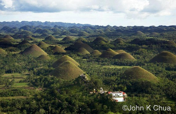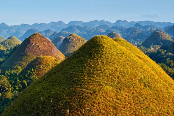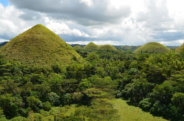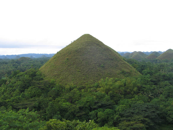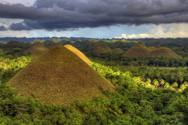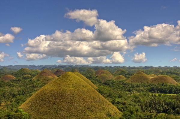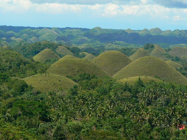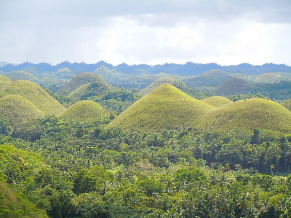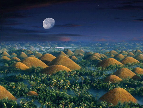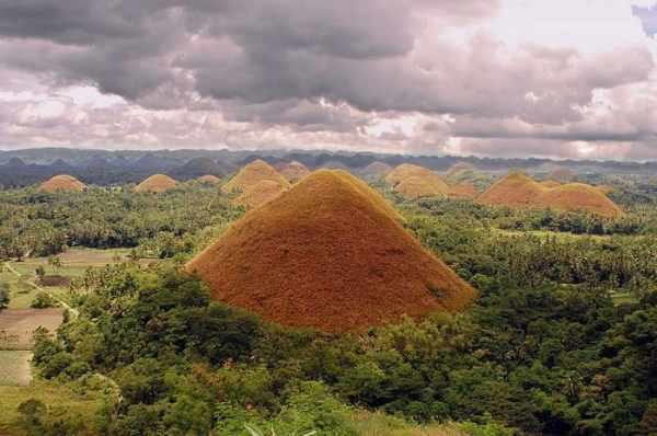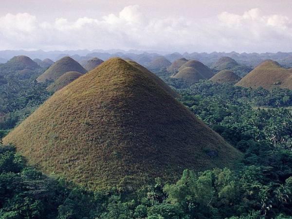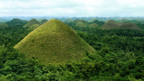Визитной карточкой тропического острова Бохол (Bohol) на Филиппинах являются Шоколадные холмы (Chocolate Hills), их форма и цвет настолько напоминают шоколадные конфеты в коробке, что их так и хочется съесть. Но не только похожестью на конфеты они интересны, про них сложено множество легенд, даже ученые не могут прийти к единому мнению как появились эти холмы.