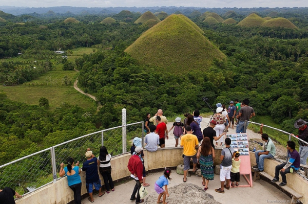 Для тех, кто хочет полюбоваться холмами, на одном из них есть специальная обзорная площадка, с нее хорошо наблюдать и поэтому здесь полно туристов, а также и самих филиппинцев. На подходах к площадке установлено много ресторанчиков, отелей, а также сувенирных лавочек. Туристическая сфера благодаря шоколадным холмам постоянно развивается. В 1988 году это место получило статус объекта Всемирного наследия ЮНЕСКО.
