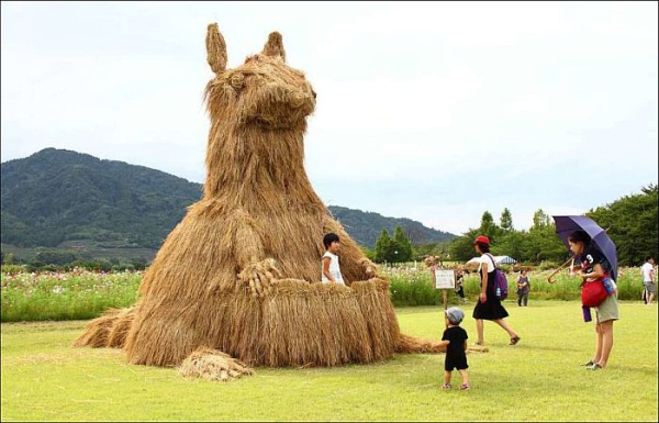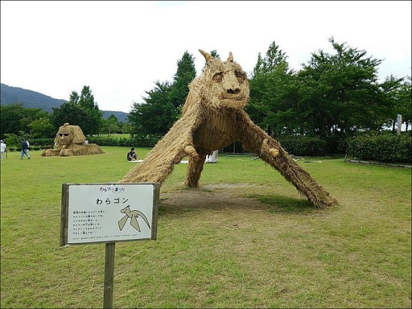 Если раньше в сельских районах Японии после уборки риса ненужную солому сжигали, то благодаря какому-то умному человеку теперь из нее начали делать разнообразные интересные гигантские фигуры. Идея японским фермерам так понравилась, что для выставления своих работ придумали целый фестиваль и с каждым годом к празднованию примыкают все новые и новые провинции, выставляя и свои работы. Благодаря этому на фестиваль съезжаются туристы со всех уголков мира, чтобы посмотреть на чудные скульптуры из такого, казалось бы, невзрачного материала.