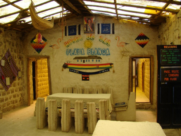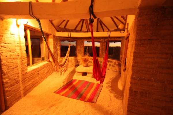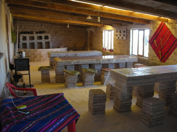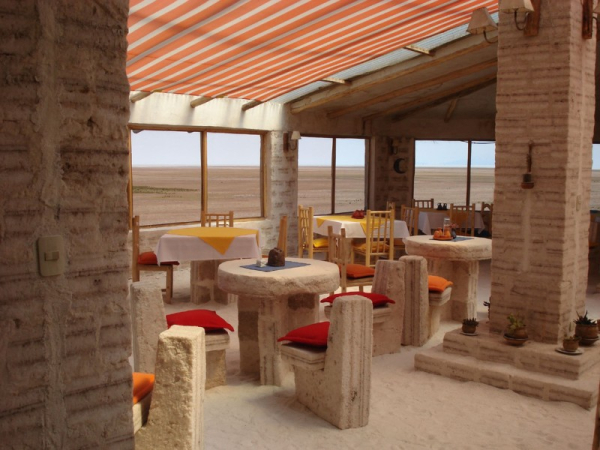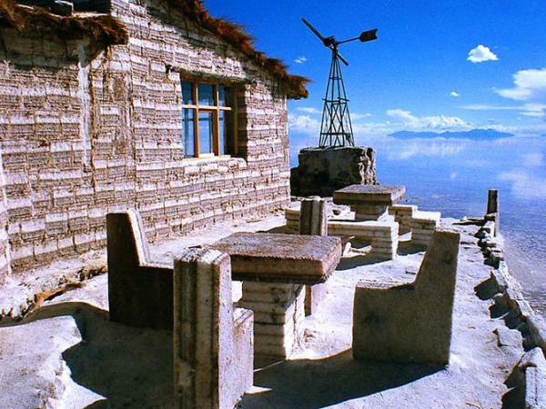 Солончак Уюни является самым большим в мире соленым озером. Естественно, сюда приезжают тысячи туристов со всего мира, многие из которых останавливаются в этом самом соляном отеле. Искусные ремесленники высекали соляные блоки, плотно скрепляя их друг с другом раствором из воды и соли. Кровати, стулья, туалеты — все здесь сделано из соли.